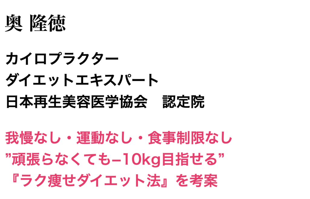 生理学、分子栄養学、解剖学、運動学、遺伝学など、ダイエットに関わる様々な分野の知識を学んだ結果、「自然と痩せる体質」に変われば、運動や食事制限なしでも痩せられると確信。